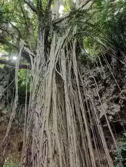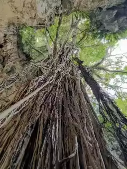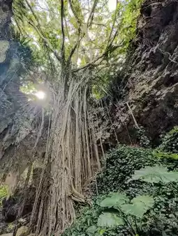 The area, which can only be entered by guided tour, is dotted with giant banyan trees, cave cafes, and ancient ruins, making it feel like you've entered a world of adventure✨