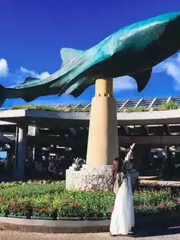 🐠 Churaumi Aquarium – Guaranteed life shots in front of the massive tank with whale sharks and manta rays swimming.