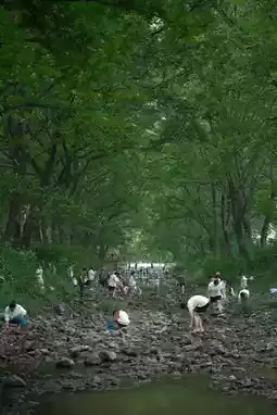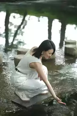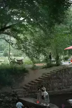 By the river, there are also grandpas and grandmas washing clothes and vegetables.