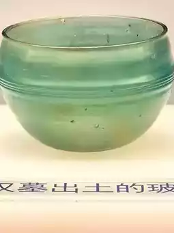 ⑨Light blue string-patterned glass cup: a "transparent elf" from the Han Dynasty, 5.5 cm high and 7.3 cm in diameter, translucent light blue, a witness to cultural exchanges between China and foreign countries along the Maritime Silk Road.