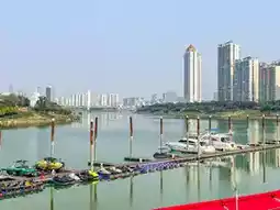 Nanning Zhengzi Wharf, located on the Yongjiang River in Nanning... Zhengzi Wharf is a complex cultural space where you can take a cruise and where many private yachts are anchored, showing a leisurely riverside view.