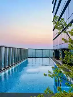 🏊 The 71st floor boasts an outdoor temperature-controlled sky pool, kept at a constant 27°C, with Nanning's most prosperous modern buildings visible beyond the transparent walls.