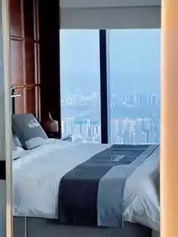 The room I stayed in this trip to Nanning was a Horizon Club Premier King Room with 270-degree floor-to-ceiling windows, the view is incredible~ You can see the Nanning "Big Shumai" Convention and Exhibition Center just by looking up, as well as the Ferris wheel at the Children's Park 🎡 The dazzling lights of Minzu Avenue make you feel like you're high above Manhattan 😅