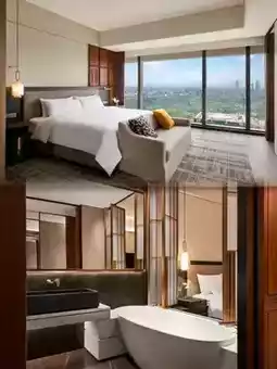 The elegant lobby blends modern design with Guangxi's local cultural elements. Spacious, bright rooms feature floor-to-ceiling windows showcasing cityscapes or the Yong River. Plush bedding, high-end bathroom amenities, and thoughtful details reflect impeccable service.