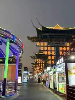 Visiting on a Friday evening, the crowd was minimal, making it very convenient for taking pictures. Shops on both sides of the market were fully open, mostly offering food, drinks, snacks, and some game booths like shooting games and balloon popping.