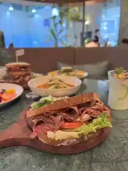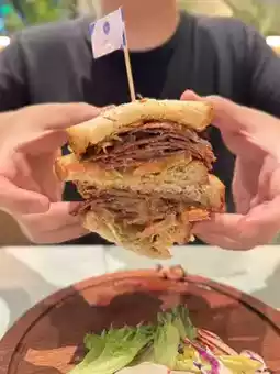 Must order 🥪 Full mouth beef sandwiches super large portion! Eun tea tastes surprisingly folded, slightly sweet tea fragrance prominent, muffins have some point loose cake Chicken and Potato Salad Hand-torn chicken breast with cucumber, nuts, and dried cranberries, low in calories, low in fat, and full of protein.