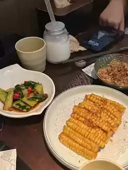 The corn is prepared in a Typhoon Shelter style, with a salty exterior and a sweet, creamy taste. It's quite delightful.