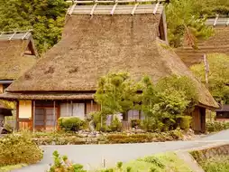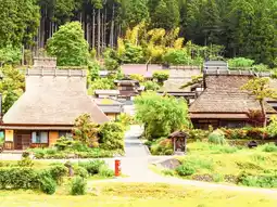Step into a **Ghibli-esque dreamscape** at **Kayabuki no Sato**, a preserved hamlet in **Miyama, Kyoto**, where **200+ thatched-roof houses (*kayabuki*)** glow golden under the summer sun. Wander flower-lined paths, sip cold matcha by the river, and feel time slow down.