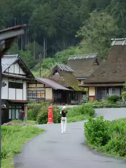 This village features thatched roofs, a traditional kayabuki style, built over 200 years ago. Today, it's one of the few remaining in Japan. The village houses homestays, shops, restaurants, and a Japanese-style cafe. The houses are densely packed together.