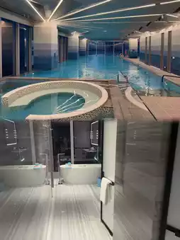 The hotel's heated swimming pool is super clear. The 25-meter-long pool has excellent underwater visibility. I soaked in the pool, looking at the city scenery outside the window, and felt completely relaxed. There is also a children's play area next to it, and the kids had a great time.