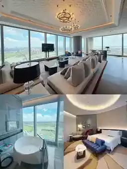 The design of Le Méridien features a blue-themed space, with thoughtful details in every corner, making it an Instagram-worthy spot with just a casual snap 📸. Then, we visited the high-rise suites at Courtyard and Le Méridien, where the views were stunning! The floor-to-ceiling windows offered an unobstructed panorama of the river and cityscape 🏙️.