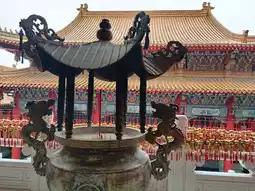In the square in front of the temple, there are two giant red lions donated by Chairman Wu Huo-shih of Shin Kong Insurance Company, which are affectionately called 'Wu Huo Lions' by the locals.