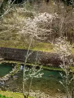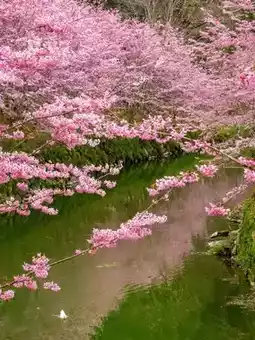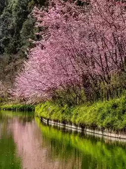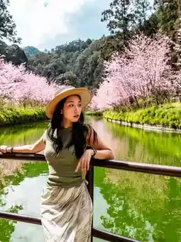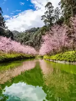 I saw the blooming waterfront cherry blossoms on the news and drove 2.5 hours from Taichung to Nantou. Even though I only visited the cherry blossom area, I felt it was worth it, especially the calm green waterway, which makes the pink cherry blossoms particularly gorgeous. 🌸 The varieties are mainly pink mountain cherry blossoms, and there are also white cherry blossoms near the hotel.