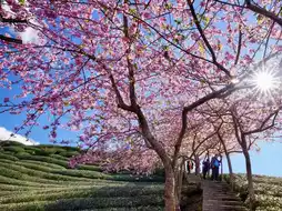 In the gentle breeze of spring, stepping into the Zhushan Cultural Park in Nantou, cherry blossoms are in full bloom within the quaint and elegant park. The romantic spring colors add a touch of charm to this land rich in bamboo art culture. Along the paths, pink Yoshino cherry blossoms and crimson mountain cherry blossoms bloom in a staggered manner, creating a unique spring scenery in contrast with the lush bamboo forest. As the breeze blows, petals fall like fine rain, covering the stone paths with a delicate cherry blossom carpet. Visitors stroll leisurely, photographers capture the shimmering beauty of the cherry blossoms in the sunlight, and children play among the bamboo art installations, their laughter echoing under the cherry trees, adding vitality to the cultural park. In the Bamboo Art Exhibition Hall, looking out through the windows, the cherry blossoms sway gracefully in the spring light, with bamboo shadows and flower shadows intertwining like a poetic painting. The warm afternoon sunlight dances between the bamboo and cherry blossoms, whispering the secrets of spring. As the sun sets, the last golden rays gently fall on the pink sea of flowers. I stand quietly, deeply imprinting this beautiful scene of bamboo rhythms and cherry colors into my heart, cherishing this spring encounter.