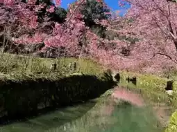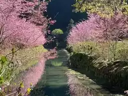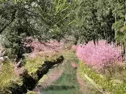 The cherry blossom riverside at Sun Link Sea, with the reflections of the Camellia Cherry Blossoms and Wushe Cherry Blossoms on the lake, is as beautiful as a painting!