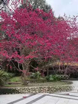 There is a large cherry blossom forest, including Yoshino cherry and Yaezakura.
