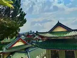 This is such a unique green temple! The architecture is really different from the traditional temples we usually see — it kind of looks like a Taiwanese version of the Blue House in Korea. Grand and distinctive!