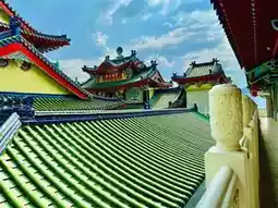 A very special green temple! The entire architectural style is really different from the temples we usually see. It is a bit like the Taiwanese version of the "Blue House". It looks solemn and special.