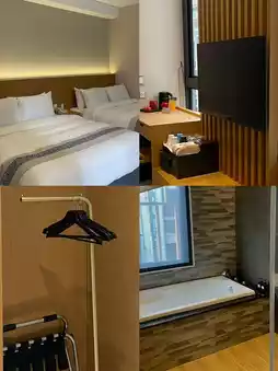 The room was clean and decorated in a minimalist Muji style. It was fully equipped with amenities, including tea for self-brewing in the room.