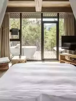 The main building of the hotel combines the texture of logs, plaster and natural stone, which is both modern and low-key. The appearance is simple, but once you walk into the interior, you will find that the sense of space is very delicate-large glass brings in natural light, and the interior space uses a lot of light wood and lime walls, combined with the brand's unique planting style and cultural elements, which is both quiet and design-oriented.