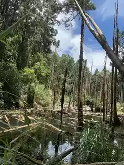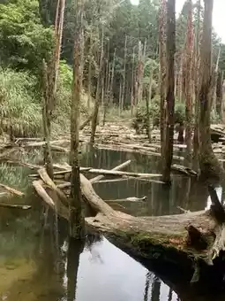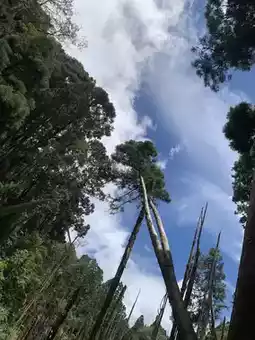 Forget Worries Forest is a perfect destination to visit after a rainy day. After passing through Xitou and the twelve zodiac signs markers, continue driving uphill. You'll pass by "Longfeng Gorge," and at this point, keep an eye out for advertisements for the "Forget Worries Forest Shuttle Bus." If you see them, you're almost there. To enter Forget Worries Forest, you'll need to hike up a steep slope, which is quite challenging and takes about 45 minutes. Alternatively, you can take the shuttle bus, which costs an average of 200 NTD per person (round trip). I highly recommend taking the shuttle bus as the slope is indeed very steep. This spot is absolutely worth visiting. Noon is not the best time due to the strong sunlight; the ideal times are around 9 AM or 3 PM when mist surrounds the dead trees, creating a stunningly beautiful scene.