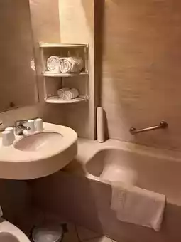 Free parking is available. This is a standard hotel with a large lobby and spacious rooms. The rooms have bathtubs for soaking in the hot springs, but the water needs to be drained for 15-20 minutes before it gets hot.