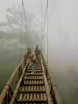Then there's the University Pond, a serene body of water crossed by a bamboo bridge. Occasionally, morning mist drapes over the lake like a delicate veil, creating a romantic interplay between water and mountains, as if scattered souls are reflected in a mirror.