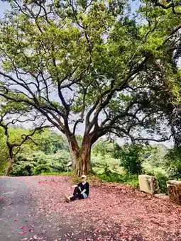 During autumn and winter, the leaves of the Ceylon olive trees turn red, painting the trail with a romantic and warm ambiance, as if walking through an avenue of autumn foliage.