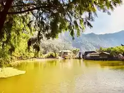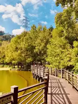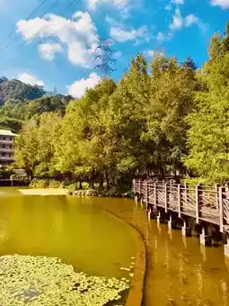 A lakeside trail surrounds the pond, lined with maple trees, camphor trees, bald cypresses, and Hong Kong orchid trees🌳. During autumn and winter, the vibrant colors create a picturesque scene of reflections between the lake and the mountains.
