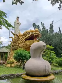Wanfo Temple, located in Nansi District of Tainan City near Zengwen Reservoir, is often referred to as Taiwan's Angkor Wat. Built in 1987, the temple features a pagoda-style architecture with a grand and magnificent appearance. Another highlight of the temple is the "Xiao Putuo Mountain Zen Park," which has earned the nickname of Taiwan's Angkor Wat. The park boasts stone cave Buddha statues, weathered ancient city ruins, stone forest landscapes, stone wall carvings, and a unique natural beauty of stalactite caves. Visitors wishing to explore the park must book their visit online in advance; otherwise, they may find the gates closed. However, due to recent earthquakes in the Zixi area, some large rocks in the park have shifted, and for safety reasons, the park is temporarily closed.