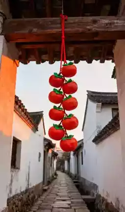 Learn to dry persimmon cakes with the villagers: peel the soft persimmons and hang them on bamboo poles, swaying cutely in the breeze! Walking on the bluestone path, look up to see "blue bricks and black tiles paired with red persimmons," your phone storage won’t be enough to capture it all!