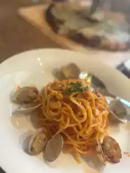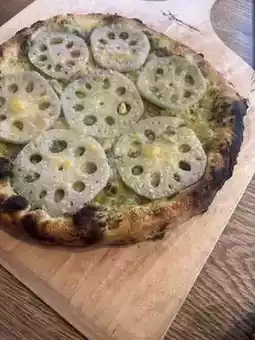 The lotus root pizza and pasta were chewy and absolutely delicious🤤