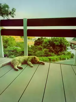 There are many cats both inside and around the lodge.