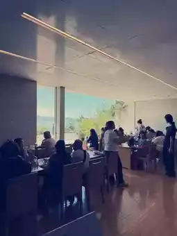 The most worthwhile place to visit during the Setouchi Art Festival: Naoshima Chichu Art Museum. You need to book your tickets online first. You can search for "Belles Reservation" on Google and you'll see the website. It's recommended to book between morning and noon. Several spots in the Chichu Art Museum are very light-sensitive; visiting during the day when the sun is strong is best. It's about a 10-minute bus ride from the harbor to the Chichu Art Museum. Photography is prohibited at most points in the museum. The most famous one is Monet's water lily painting. It's actually blurry and hard to make out. It's said that Monet suffered from severe cataracts in his old age, which is why the view is blurry. There's a cafe inside the museum where you can have lunch. I booked a 10:45 entry, so it was a great time to have lunch right afterward.