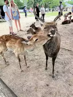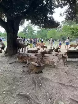 Next, we head to Nara's most iconic spot - Nara Park! The deer here are simply amazing and are the soul of Nara! However, these deer have various personalities. Some are extremely friendly and will rush over if they see you have deer crackers, while others are very aloof and won't pay you any attention, even acting a bit haughty 😃. You can buy deer crackers in the park, but I strongly recommend not feeding them all at once! We'll be visiting Todai-ji Temple next, where there are also many deer, so save some crackers to avoid any regrets.
