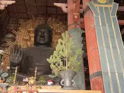 Inside the Great Buddha Hall, there is a 15-meter-tall giant statue of Vairocana Buddha. The Buddha's belly and part of the lotus throne are original from the Nara period, while the other parts have been gradually restored over the ages.