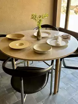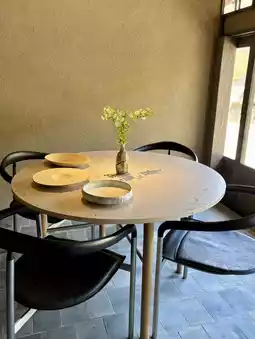 The interior of the restaurant retains the charm of an 80-year-old traditional house while remaining modern and sophisticated. Decorated with art from Nara, the warmth of the firewood fire creates a comfortable atmosphere. The quiet and calm environment is perfect for special anniversaries and luxurious time with loved ones. You can enjoy a special time spent relaxing while savoring fine food and nature.