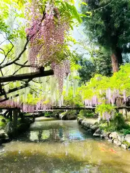 There’s always something blooming depending on the season. Wisteria, irises, plum blossoms and the layout is really easy to stroll through. You can take your time, stop at little benches, and just enjoy the peace and quiet. It’s super green and feels like a little forest escape, even though you’re not far from town. Definitely not a high-energy place, but that’s the point. If you want to slow down and chill for a bit, this garden totally hits the spot.