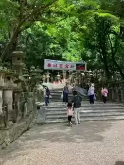 Kasuga Taisha also has cafes and rest areas. Kasuga Nari Chaya, located in front of the entrance to the Manyo Botanical Garden, offers a relaxing spot surrounded by the forest of Kasuga. Its specialty is Manyo porridge, made with kombu broth and finished with a mild white miso flavor. Sweet treats like kuzumochi, green tea, and ice cream are also available.