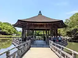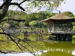 Ukimido is a stunning temple that appears to float on the water's surface. Every spring, when the cherry blossoms are in full bloom, it creates a picturesque scene reminiscent of a manga. Cherry blossom petals drift onto the water, forming an exquisite painting-like view. The atmosphere here is tranquil and serene, making it an ideal spot for a leisurely stroll to embrace the arrival of spring.
