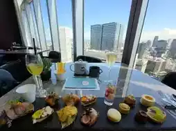 The second round of afternoon tea on day one is at a scenic restaurant attached to the wedding hall on the 28th floor, visible on the right. The view and menu here are splendid, and the price is reasonable. The savory items are perfect, and the sweets are standard.