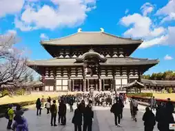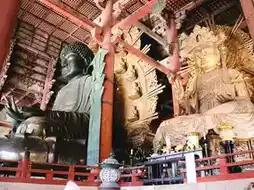 One of Japan's most famous Buddhist temples, Todaiji Temple stands out for its wooden Daibutsuden, one of the world's largest wooden structures. Inside, a bronze statue of the Great Buddha (Daibutsu), approximately 15 meters high, is enshrined in the temple grounds. It's surrounded by intricate sculptures and carvings, and the temple grounds offer a tranquil atmosphere with lush greenery and gardens. The temple grounds are also home to a herd of tame Nara deer, creating a charming atmosphere for photography and a close-up look at ancient Japanese culture.