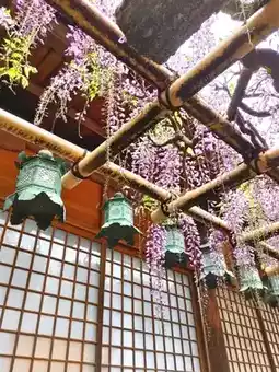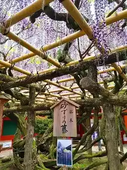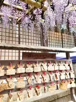 Since it's located near the shrine office, it's recommended to take photos with the grounds, wisteria, and amulets in the background for a fantastical look.