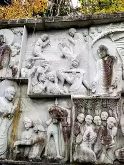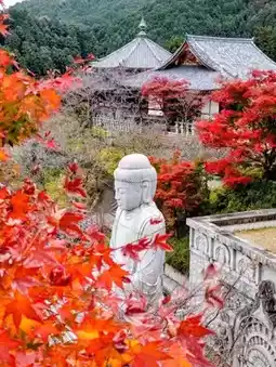 Tsubosaka-dera Temple is an ancient Shingon Buddhist temple, known as the 6th temple of the Saigoku 33 Kannon Pilgrimage. It is said to have been founded in 703 (Daihō 3). The main deity, the Eleven-Faced Thousand-Armed Kannon, is believed to have miraculous powers for curing eye diseases. In autumn, the temple grounds are beautifully adorned with colorful leaves surrounding the large stone Buddha statues. While accessible by public transport, it is quite far from the Osaka and Nara areas.