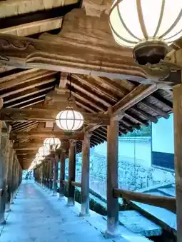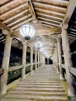 From Tsubosaka-dera, take a combination of bus and train to Miwa Myojin Ōmiwa Shrine. This is one of Japan's oldest shrines, unique for not having a main hall but instead worshiping Mount Miwa through a triple torii gate. Although time was limited, the serene atmosphere was refreshing. Then, take a bus and train to Hasedera Station. Stay overnight at Yamato-ya, an inn located near the gate of Hasedera Temple. After dinner at the inn, visit the temple's nighttime illumination. The lanterns and the atmosphere were enchanting, though the autumn leaves were less visible at night. The lanterns, however, created a magical ambiance.