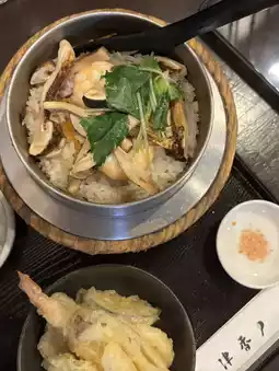 If you visit in autumn, don’t miss the seasonal 松耳 (Matsutake) mushroom kamameshi. The mushrooms add an earthy, forest-like aroma and unique texture—perfectly capturing the essence of fall in Japan.