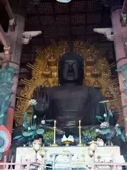 Entering from Nara Park, you'll encounter the imposing Nandaimon Gate, towering as far as the eye can see. Inside, you'll find a large, fierce, lifelike guardian deity guarding the entrance to the temple. Continuing on, you'll reach the main hall, Daibutsuden, the highlight. Your first impression is, "Wow... it's so huge!" The giant wooden structure is so tall it's almost tiring to look up. Inside, you'll find a colossal bronze Buddha statue, nearly 15 meters tall. Every time you look at it, you're drawn to an indescribable sense of tranquility.