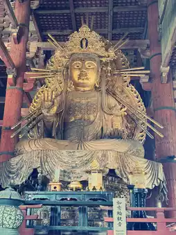 • The Agata and Umagata statues, each approximately 8.4 meters tall, guard the Great Buddha Hall.