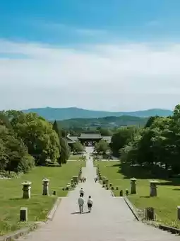 While visitors crowd in front of Kasuga Taisha Shrine in Nara Park, I climbed Wakakusa Mountain along an unnamed trail. This sacred mountain, embraced by three layers of lush greenery, carries the fresh scent of mugwort and deer antlers in the May breeze. The velvety grass slopes shimmer with golden-brown ripples in the sunset, and the entire mountain looks like a giant piece of washi paper forgotten by time, with every fold recording the old dreams of Heijō-kyō.