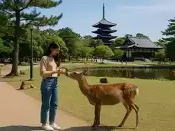 The park's most charming feature is its freely roaming deer. These friendly creatures are unafraid of humans and may even bow their heads as if greeting you when approached. You can also feed them special deer crackers, called 'Shika Senbei,' which are sold throughout the park.